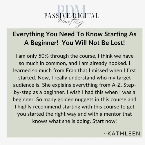 I stumbled upon Passive Digital Mastery ... and realised that Fran was nothing more or less than me ... if SHE could CREATE ABUNDANCE ... by being authentic and REAL ...